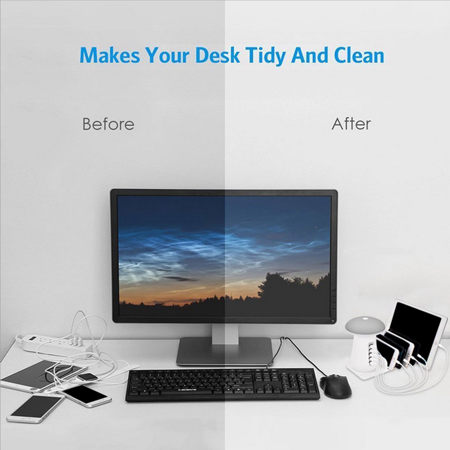 charger station allowed this docking station can charge up to 5 devices simultaneously, you can use it to charge all your smart phones, tablets at home or in the office which keeps everything in one place, convenient and organizes the pool of cables from your desk