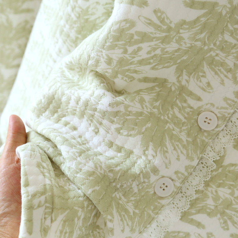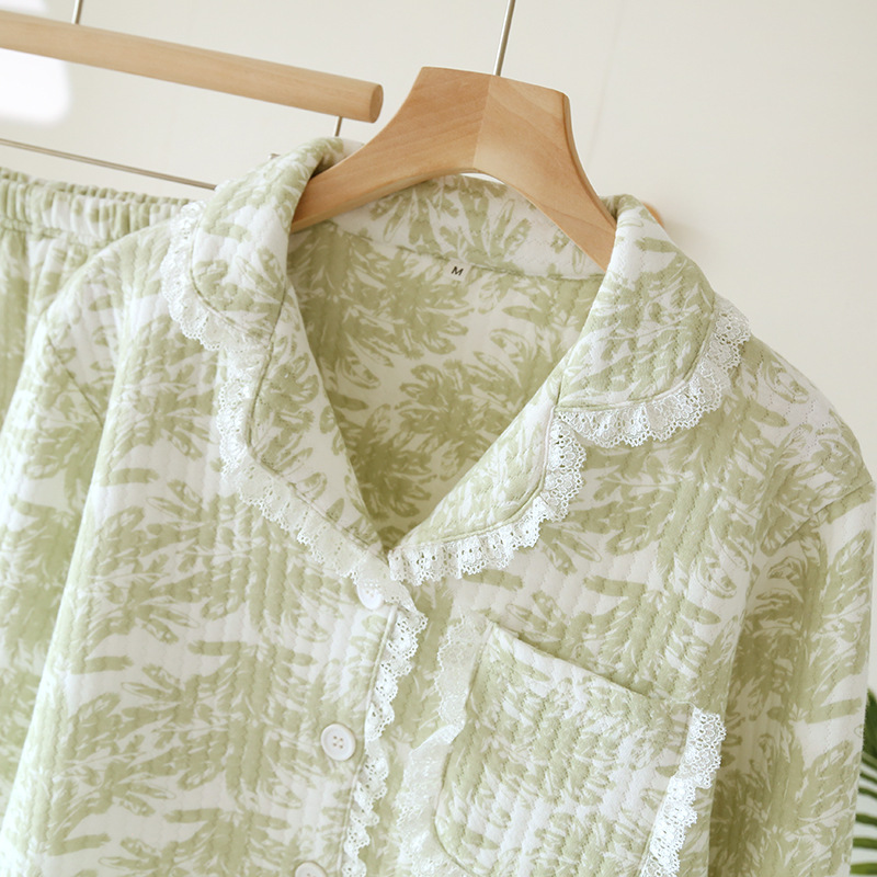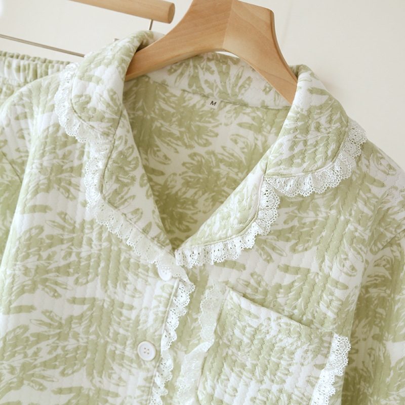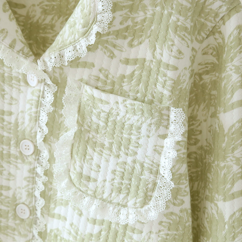 Lace Lapel Cotton Air Layer Pajamas Suit