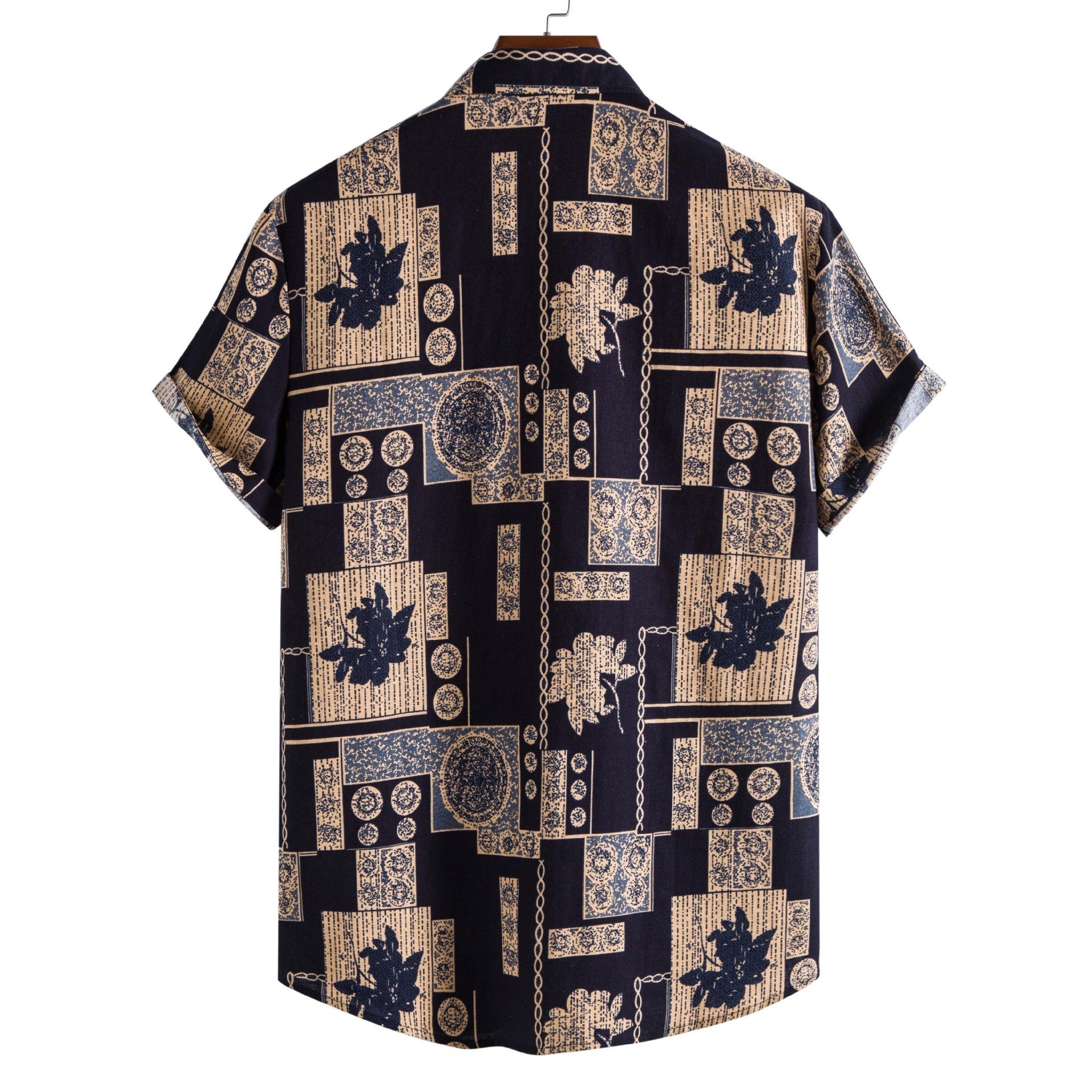 New Men's Fashion Trend Cotton Linen Printed Short Sleeve Shirt