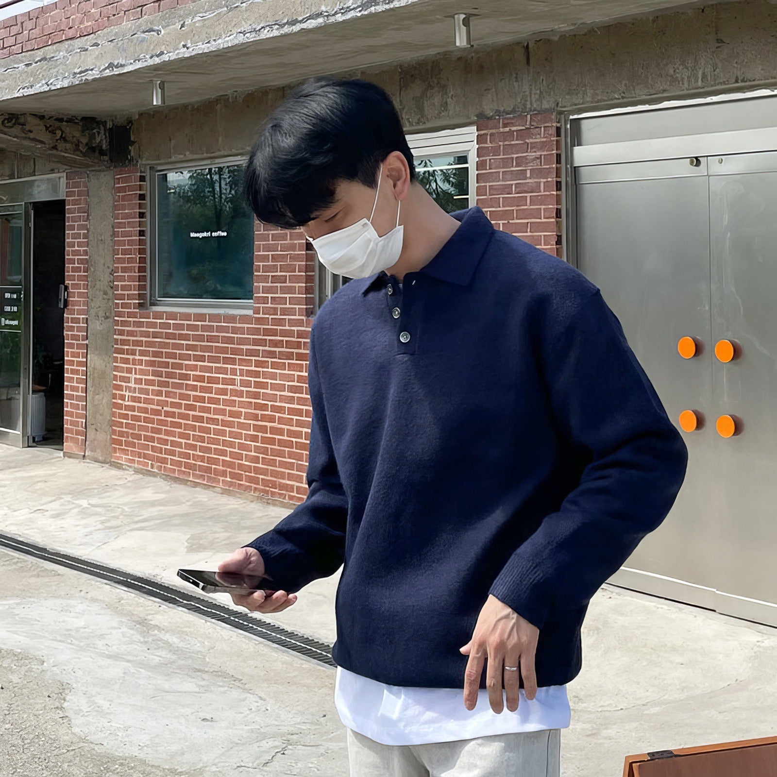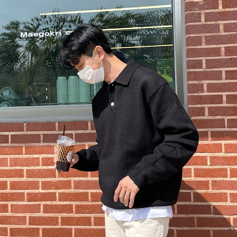 Polo Collar Sweater Men's Autumn And Winter Long Sleeve Lapel Knitwear