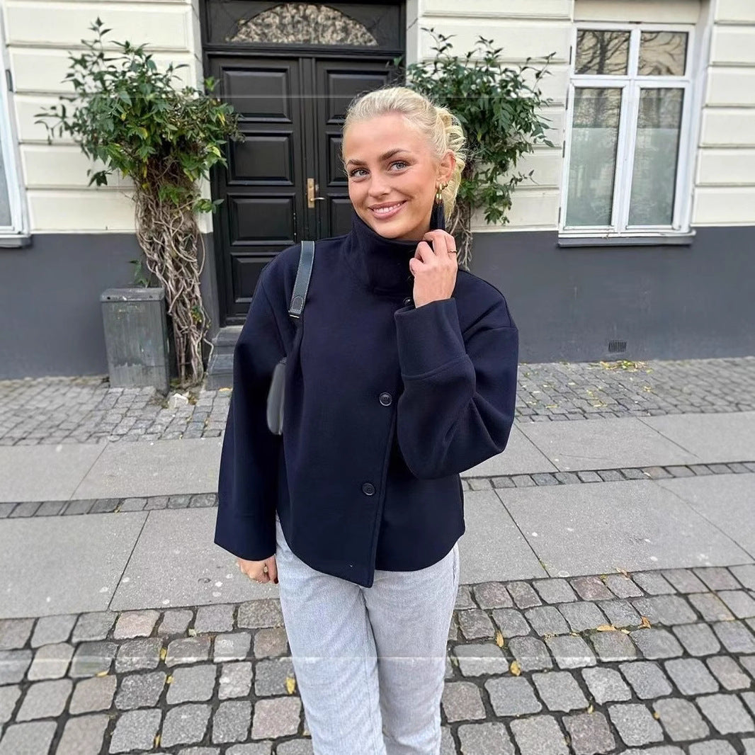 Women's Jacket Stand Collar Single Breasted Loose Woolen Coat